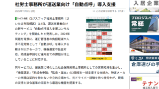 いつもロジスフィア社労士事務所のホームページをご覧いただき、誠にありがとうございます。 この度、当事務所の「自動点呼導入支援コンサルティング」サービスが、運送・物流業界の大手専門ニュースサイトである「LOGISTICS TODAY(ロジステ...